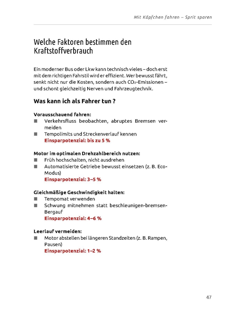 - Verschleißreduzierung durch bewusste Fahrweise