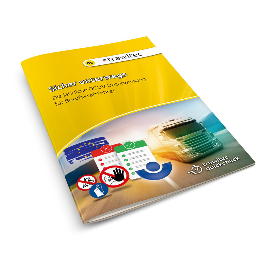 „Sicher unterwegs“ ist ein praxisorientiertes Schulung- und Nachschlagewerk zur jährlichen DGUV-Unterweisung gemäß DGUV Vorschrift 1 für Berufskraftfahrer.